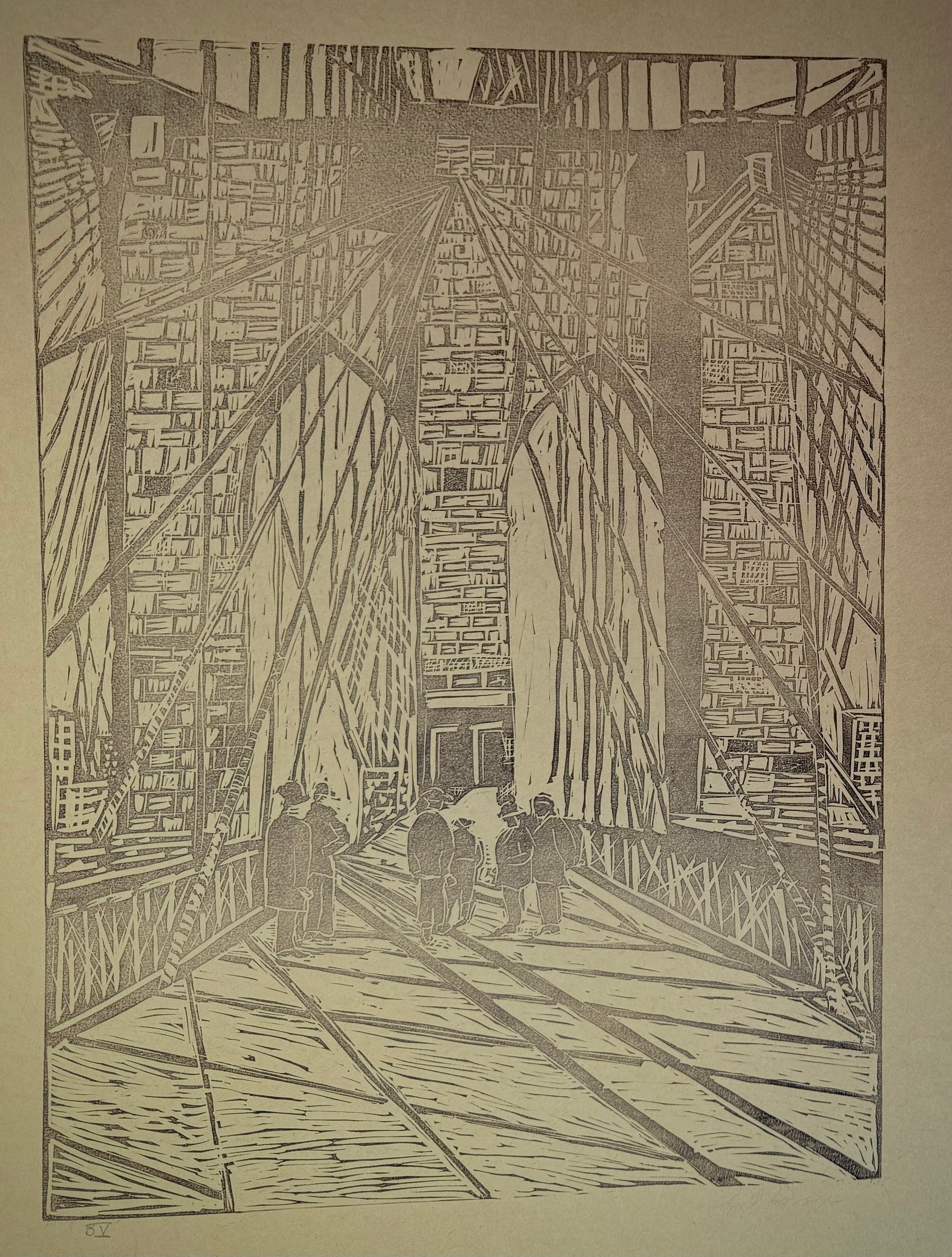 13.75"X18.25" (image dimensions on larger paper) linocut print on Mulberry paper by JoAnn Savage
