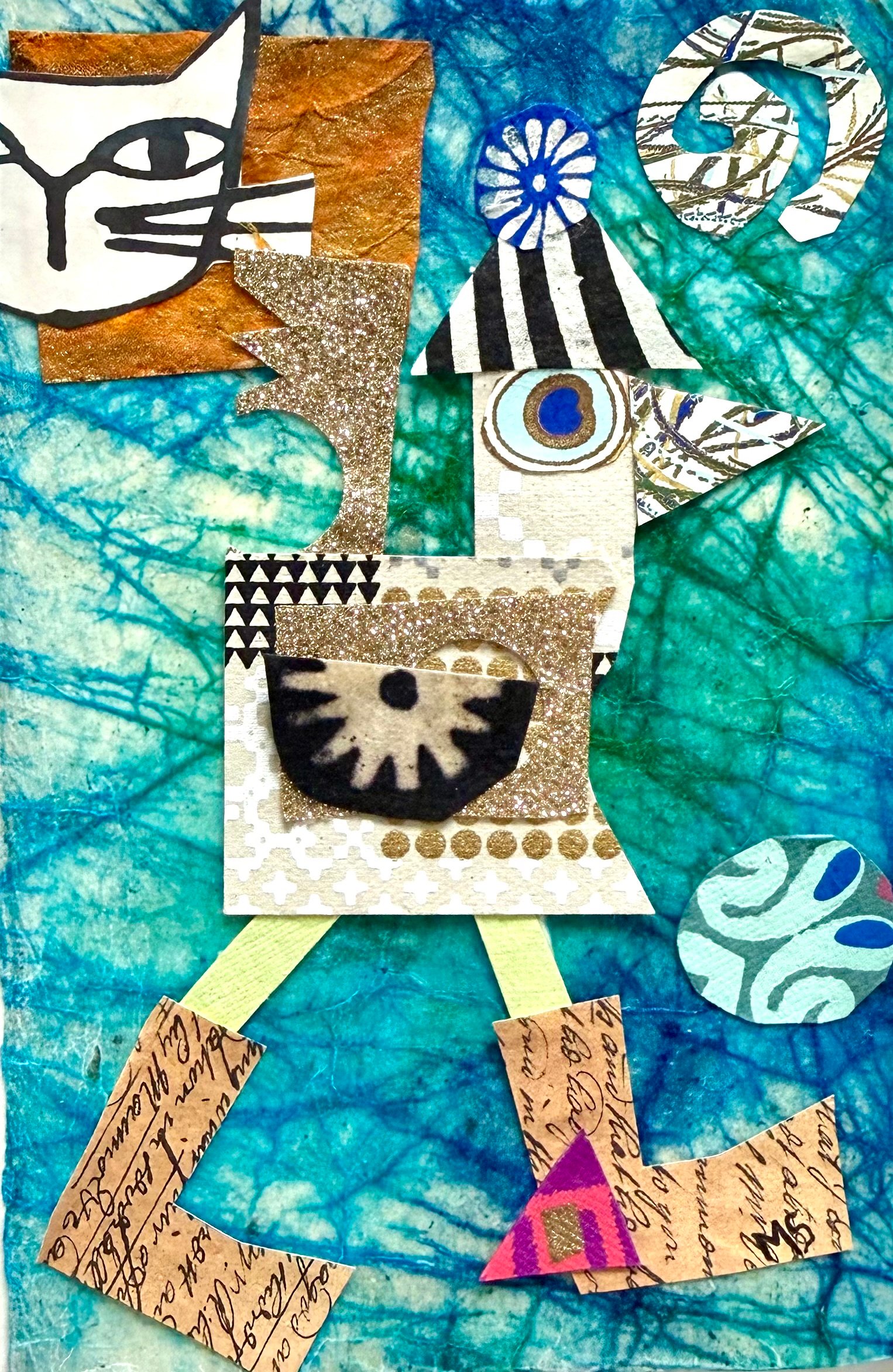 This one-of-a-kind 4X6” collage is a unique blend of printed and hand-painted papers imported from India and other sources. Each carefully selected paper is meticulously composed into the final collage, which is presented in a simple black frame under glass. Some of the papers used in this collage are Shizen papers, entirely made from post-consumer waste and produced using a pollution-free paper-making process. I source paper from various places and ensure to use all the scraps, thereby minimizing waste.