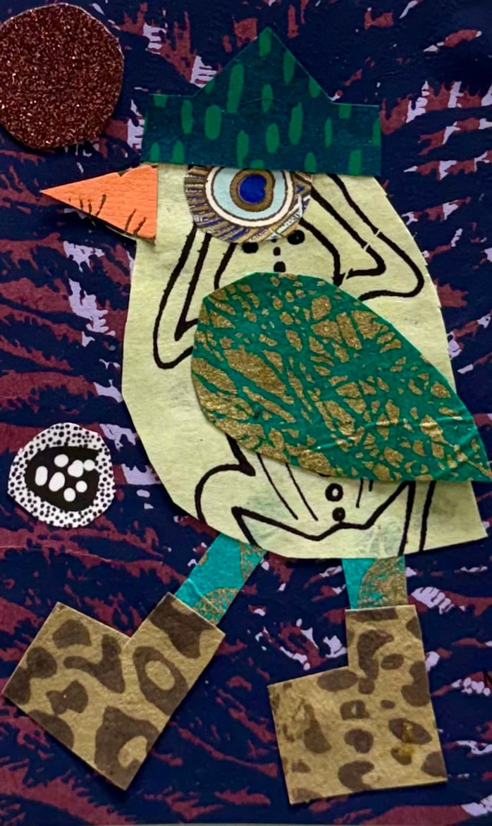 This one-of-a-kind 4X6” collage is a unique blend of printed and hand-painted papers imported from India and other sources. Each carefully selected paper is meticulously composed into the final collage, which is presented in a simple black frame under glass. Some of the papers used in this collage are Shizen papers, entirely made from post-consumer waste and produced using a pollution-free paper-making process. I source paper from various places and ensure to use all the scraps, thereby minimizing waste.