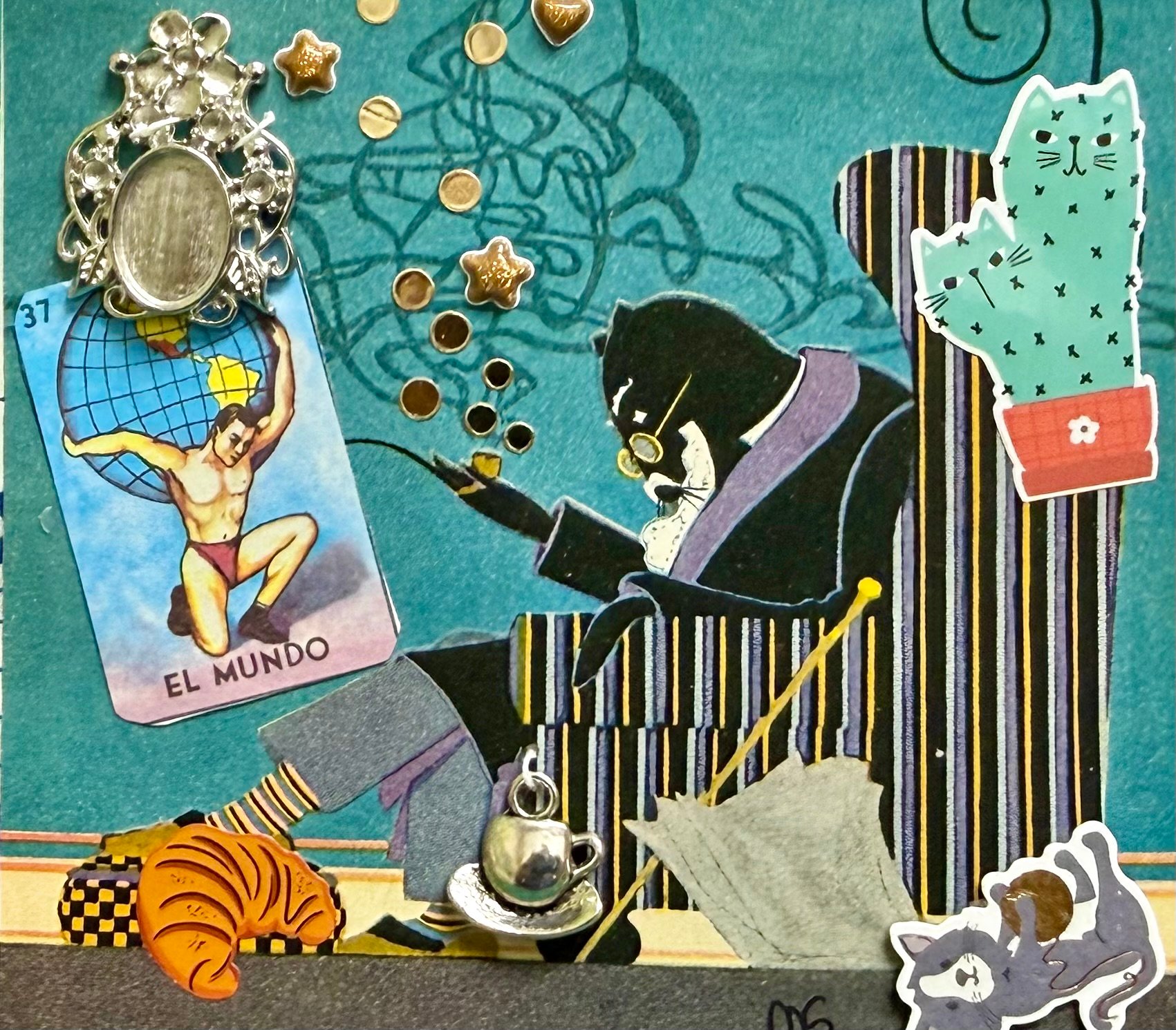 Martha Savage, an artist from New Haven, Connecticut, crafts unique, signed art pieces at an affordable price. This card collage, measuring 4.5 x 4 inches, is a delightful creation made from 100-year-old children’s book illustrations and decorative papers. Some of these papers have been artistically painted and printed on. Additionally, the collage incorporates mixed media materials, adding to its visual appeal. This piece is ideal for any occasion,