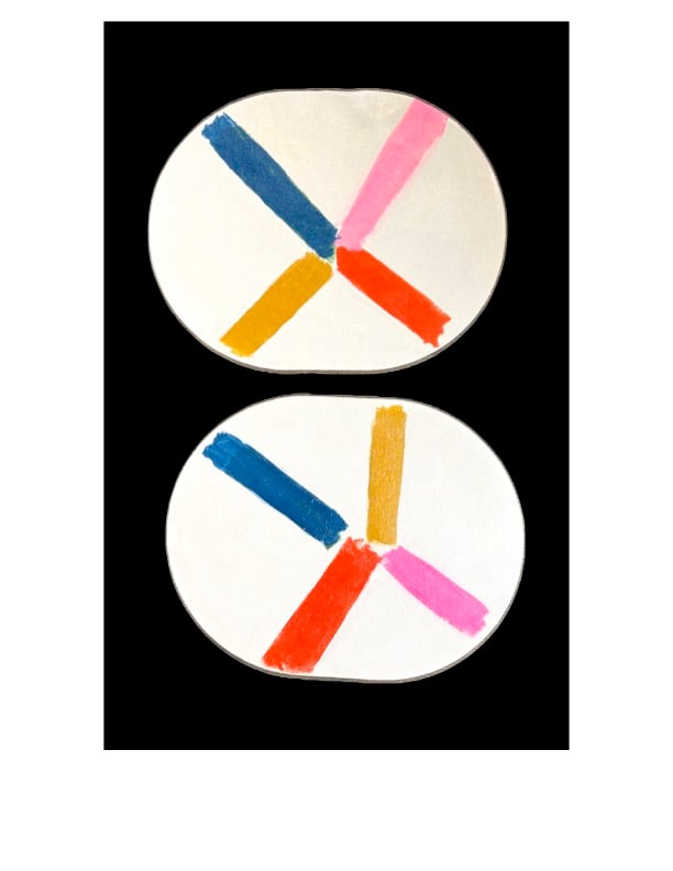 13.5 x 17.25" hand painted acrylic on cotton canvas, sealer coated. Colorful and beautiful to look at. Utilitarian and decorative. Use on a dresser top, at the table or anywhere flat. I've included a couple of process images also.